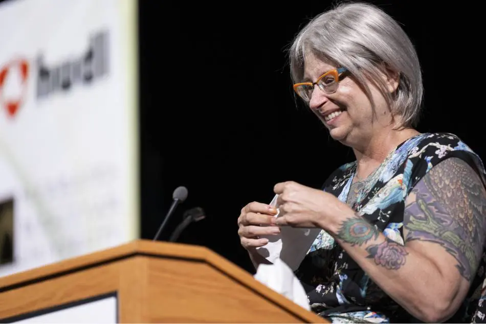 A Lincoln-area female that works in federal, state or local government who contributes to the local community and nonprofits and shares her skills for the benefit of others.